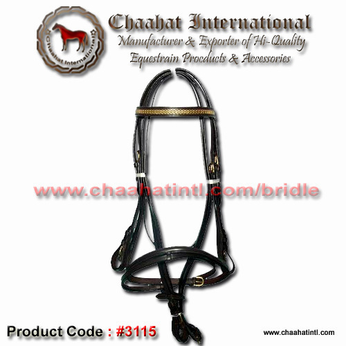 Snaffle Bridle with golden chain decoration on Browband and Raised Noseband.