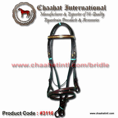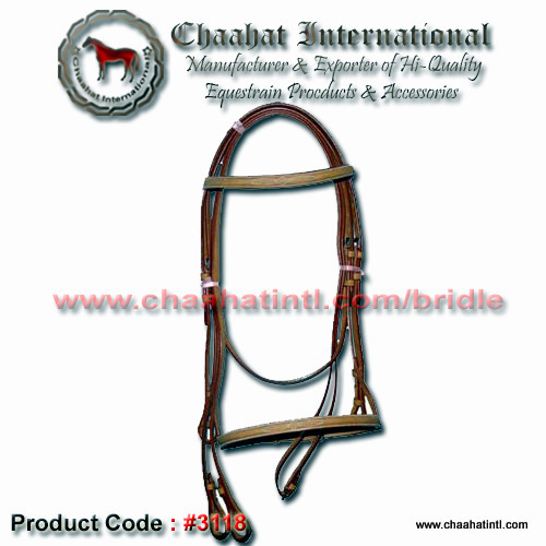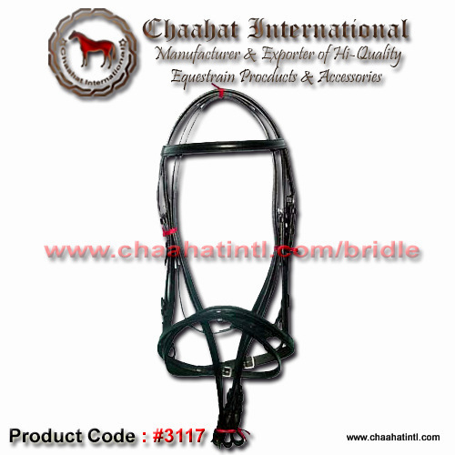 Snaffle Bridle with fancy stitching design on Browband and Noseband.