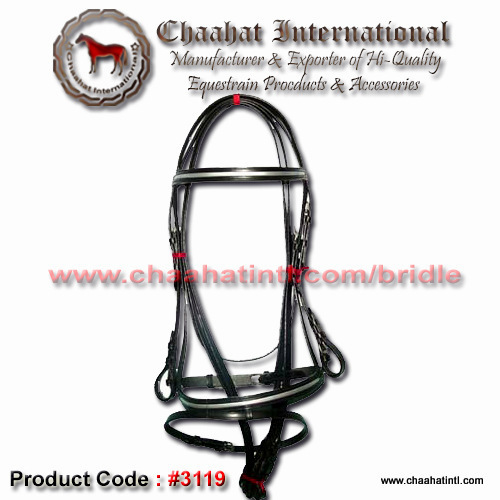 Snaffle Bridle with silver strip on Browband and Noseband.