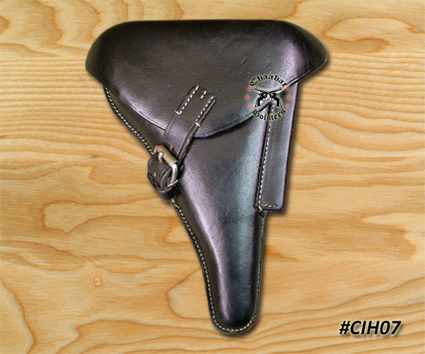 A magnificent replica of WWI era Luger hard shell holster of high quality black leather.